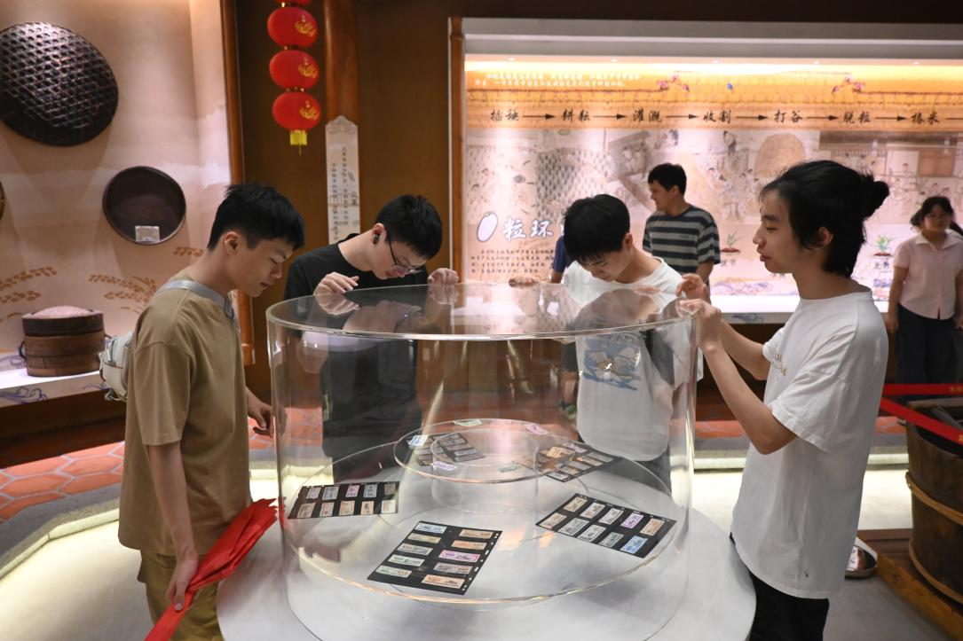 在全国粮食安全宣传教育基地——金穗米业海丝稻米文化馆,大家通过观看互动展品、图文影像、农耕工具陈列等,了解了我国农业科技发展历程,深刻感受老一辈农业科学家心系苍生、艰苦奋斗的崇高精神。