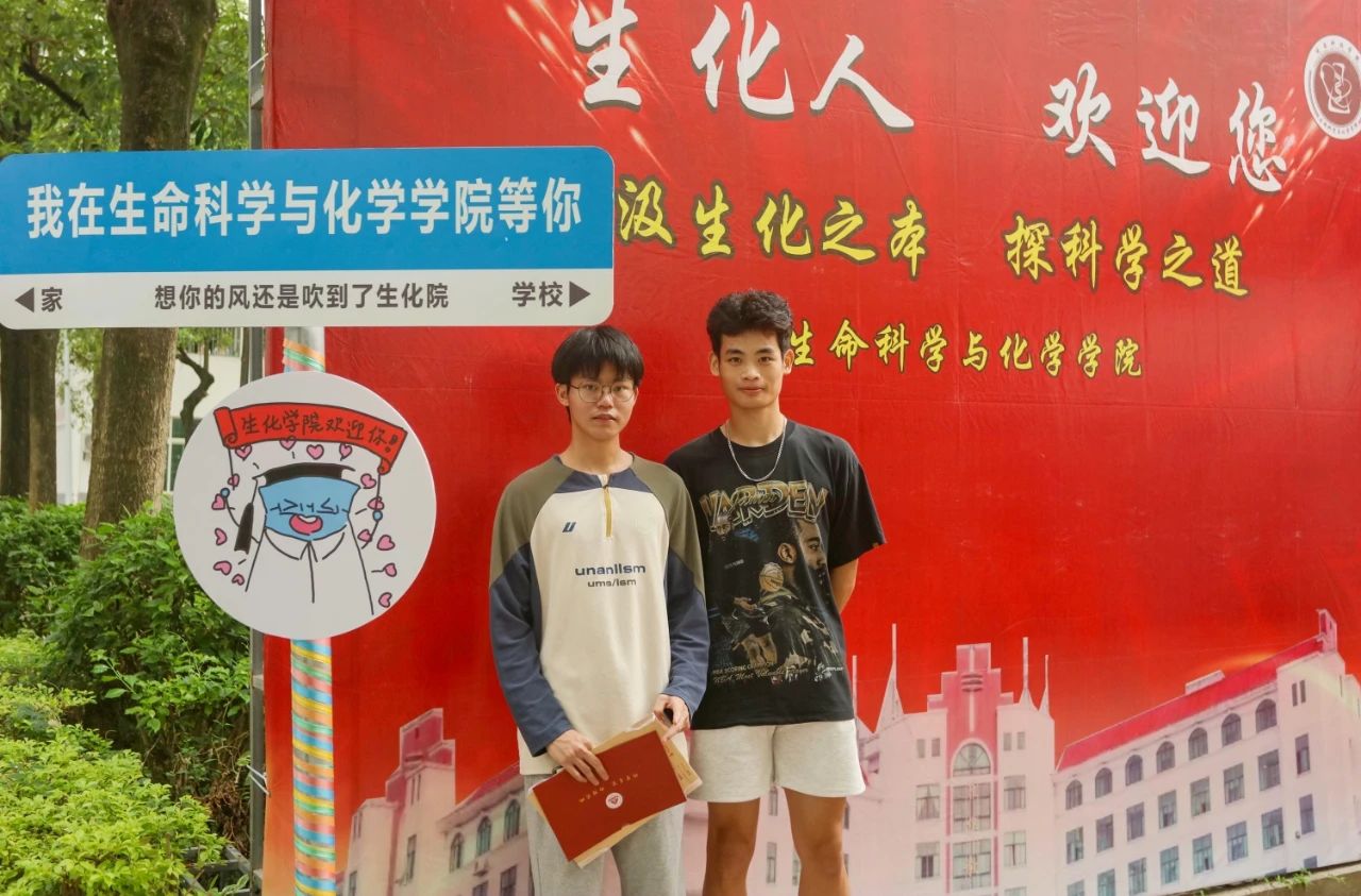 在通往光电信息学院报到处的人行道上,精心设计的迎新门和印有该学院所有新生名字的打卡墙,吸引了不少新生们上前驻足,留下了与闽科的第一张合影。“没想到还能在展板上看到自己的名字,很有归属感。”新生董柳莹表示。