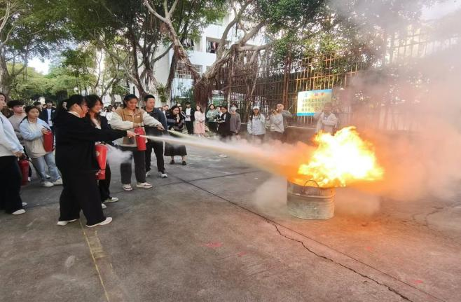 一次消防灭火实操演练在演练现场,保卫处老师就消防器材的正确使用方法向师生们进行培训,并当场示范了灭火器的正确使用方法,组织师生们上前正确使用灭火器,掌握使用方法,从而提高突发事件的处置能力和应变能力,达到学以致用的目的。