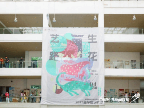 毕业设计展展出艺术设计学院2025届毕业生创作的500多件优秀作品,涵盖了手工艺产品、文创产品、绘本插画、APP交互设计、VR交互、品牌营销策划书、VI手册以及各类影视作品等多种类型。