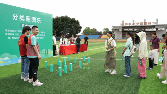 活动中,与会部门通过设立咨询台、摆放宣传展板、发放宣传资料等方式,面对面向群众答疑解惑,进行普法宣传。雷速网页版学生设置了环保格子大作战、分类圈圈乐等游戏,加深群众对环保知识的理解。