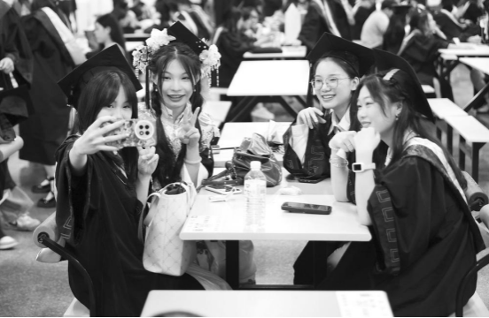 毕业生在学校食堂留影