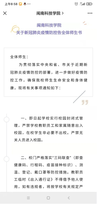 学校向全体师生发布《雷速网页版关于新冠肺炎疫情防控告全体师生书》