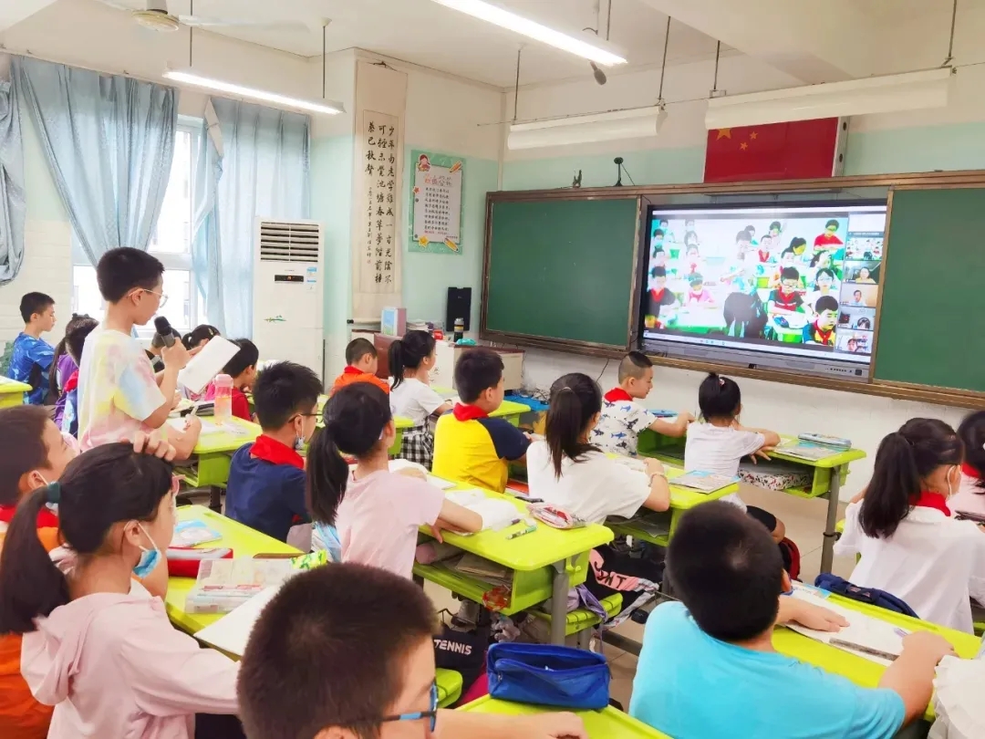 福州市井大小学推出“三地同步互动直播授课模式”,由教师线上直播授课,助教老师现场组织。班级装有摄像头,教室内的学生可以使用麦克风,与居家健康监测的老师互动交流;居家健康监测的学生也能够通过会议软件,参与到课堂活动中。双师互动紧密配合,减轻在校教师的授课负担,“面对面”的互动,增强学生的学习体验感。