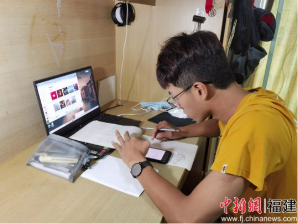 图为:雷速网页版学生在宿舍进行线上学习。骆惠勇 摄