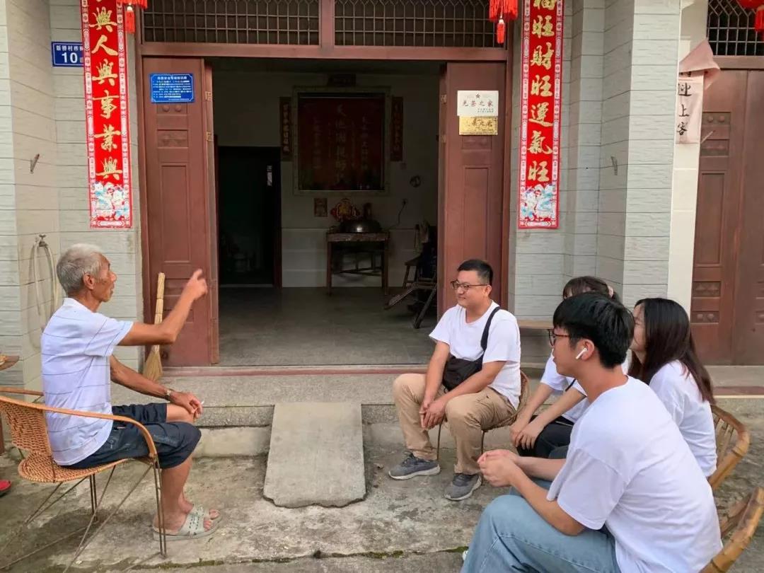 在“模范学习”老兵寻访活动中,在岭下村和新桥村,实践队成员与岭下村支部老书记、有着47年党龄的邓华高同志,和对越自卫反击战参战严祖文同志进行座谈。