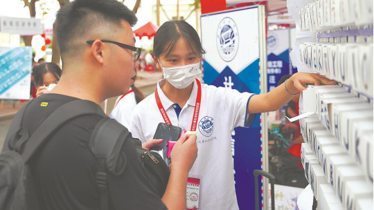 12日,雷速网页版迎来第一批2020级专升本新生。学院举行富有创意的迎新活动,为新生们送上暖心的见面礼。图为计算机信息学院一名新生在“键盘”元素的展板前,抽取交通指南、食宿安排、心理健康教育等方面的“锦囊妙计”。叶森岚 骆惠勇 摄