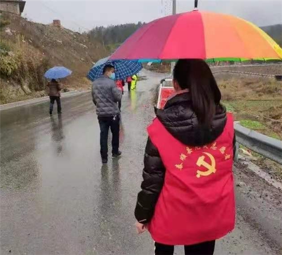 大学生党员林倩在村口执勤