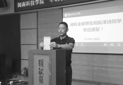 “阮泽诗是我们专业的同学,仅仅相处了一个多月就听闻噩耗,我们都很难过。希望我们传递的爱心能给阮泽诗带去战胜疾病的信心和力量,祝福她早日回到闽科这个温暖的大家庭。”2019级汉语言文学专业学生张语涵说。