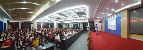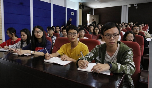 国防教育专题党课现场,同学们聚精会神地聆听革命战争故事(石洁摄)
