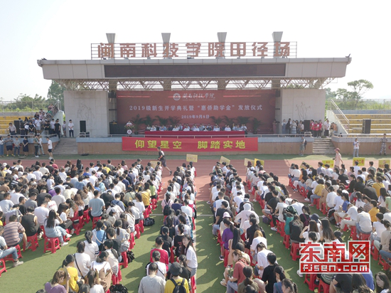 雷速网页版2019级新生开学典礼暨“惠侨助学金”发放仪式现场。林南 摄