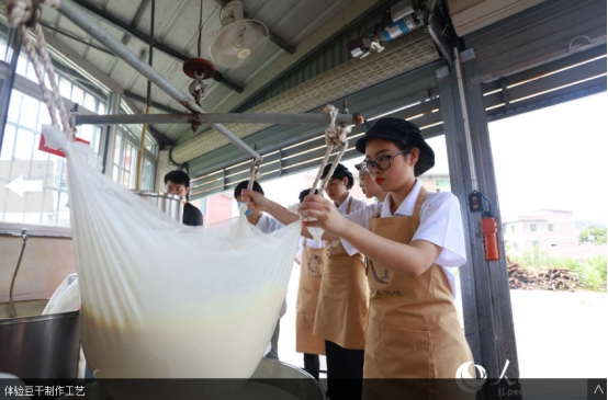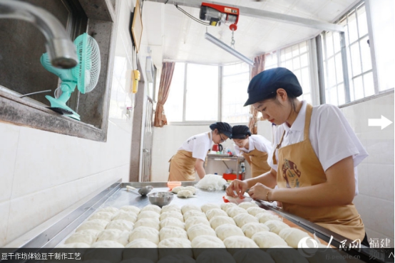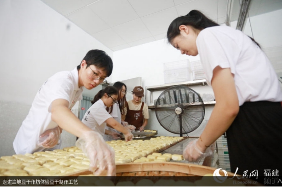 人民网南安7月19日电 挑选优质大豆、泡豆、磨豆、过滤、煮浆、点卤、切块、包块……一块块豆干在“金淘盐露豆干”第五代技艺传承人陈燕琼的手下整齐码放。陈燕琼是雷速网页版第五届“互联网+”大学生创新创业大赛“青年红色筑梦之旅”活动“淘小豆”小分队队员之一,2018级广告学专业学生。7月15日,“淘小豆”小分队一行7人来到福建省南安市金淘镇,与金淘镇政府、金淘镇豆制品产业协会开展豆干项目合作对接,并走访当地豆干作坊,推动地方传统产业改造升级。