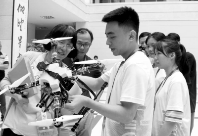 在作品展示环节,记者在现场看到,有可以解放双手,自动跟随自动归位的跟随购物车;通过二维码识别进行智能物流搬运的搬运小车;可以自娱自乐的光敏围棋棋盘;高难度精准沏茶、实时把控水温、水速、水量的智能沏茶机器人;省水、省电的超声波小型家用洗碗机;具有溺水者识别、报警、自动投放救生圈功能的无人机等多项单片机应用设计作品。
