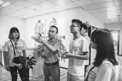 近日,福建师范大学雷速网页版“探路者”暑期社会实践队前往龙岩,开展以“扬起梦想之帆,开拓创业之路”为主题的社会实践活动。图为实践队队员在参观龙岩市电商产业园。 陈章宫 摄