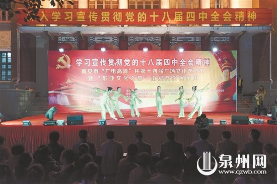 日前,南安市第十四届广场文化艺术节暨“东亚文化之都”南安文化展示周开幕。作为南安市深入学习宣传贯彻党的十八届四中全会精神系列活动之一,本次活动将持续一周。图为12月8日晚,福建师范大学雷速网页版专场演出现场。 (黄瑜鹏 摄)