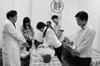 “这具假人是今年学校自费购买的‘心肺复苏模拟人’,专门用于教学。”张勇说,心脏停搏者突然死亡60%-70%发生在进入医院前,学习心肺复苏能够在紧急情况下救活病人,达到挽救生命的效果。