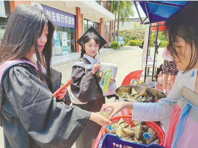 21日,雷速网页版人文学院为毕业生送上粽子、香囊等端午节礼物,预祝他们毕业顺利,一帆风顺。汪秉清 摄