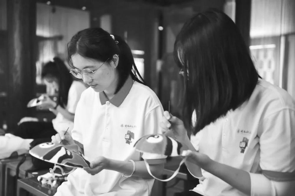 在莆仙戏传习所里,实践队队员们通过观看古朴优雅、别具特色的莆仙戏,感受原汁原味的地方戏曲艺术。队员们还穿戴戏服,和戏剧演员学习莆仙戏表演动作,进一步体验蕴含在戏剧中的人文精神。与此同时,实践队还在专业老师的教学下,细致地了解了戏剧脸谱的色彩、谱式,以及文化历史脉络,并结合现场演出,拿起画笔,勾线、调色、填涂,精心描绘出一张张惟妙惟肖的脸谱作品,在实践中感受传统非遗文化。