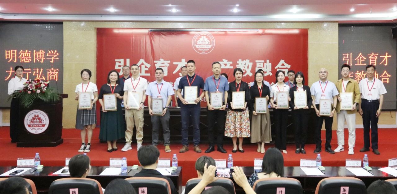 在冠名班班主任敦聘仪式上,我校敦聘福建省金鹿日化股份有限公司党支部书记柯美辉、永辉超市股份有限公司闽赣省区招聘管理负责人王建姬、福建省九牧厨卫股份有限公司客服经理陈长海,商学院曹彩霞、林巧丽、刘蕾、刘善开、任晓婉为冠名班班主任。