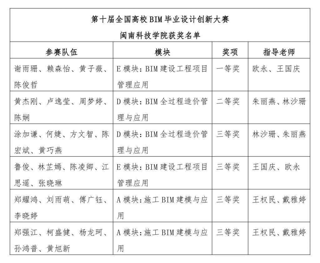 近日,第十届全国高校BIM毕业设计创新大赛公布获奖名单,我校土木工程学院选派的6支队伍分别获一等奖1项、二等奖1项、三等奖4项的好成绩。