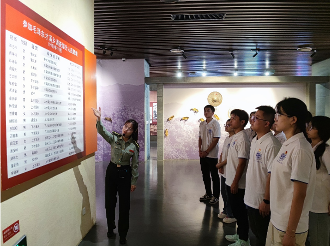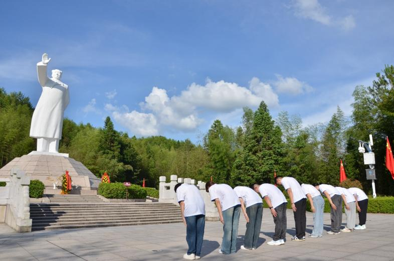 实践队沿着151级台阶拾步而上,来到位于会址东北侧的毛主席纪念园,瞻仰毛主席雕像,品读基座上篆刻的诗词,深切缅怀毛主席等老一辈无产阶级革命家的丰功伟绩和精神风范。随后,在松毛岭战役烈士纪念园,实践队认真聆听学习无名战士们不怕牺牲、血撒热土的英雄事迹,向烈士纪念碑默哀鞠躬,共同缅怀革命先烈。