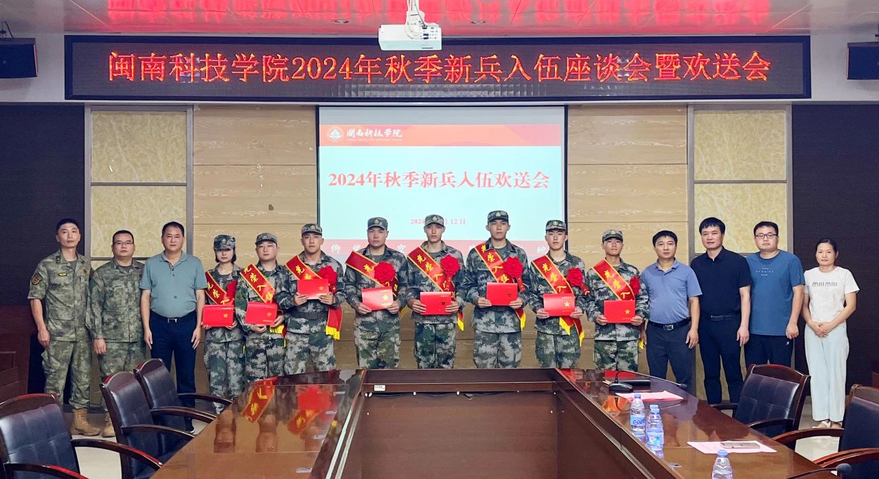 9月12日,我校举行2024年秋季新兵入伍欢送会。常务副校长周勇军出席会议并讲话。秋季入伍的8名新兵及家属,学校人民武装部及相关二级学院负责人、辅导员,退伍复学学生代表等参加会议。