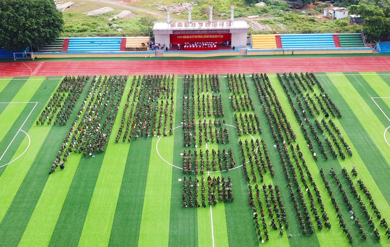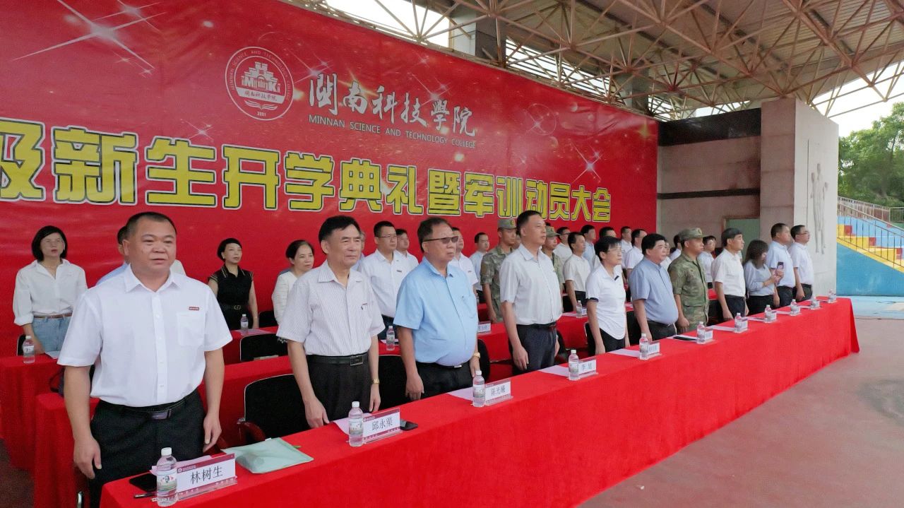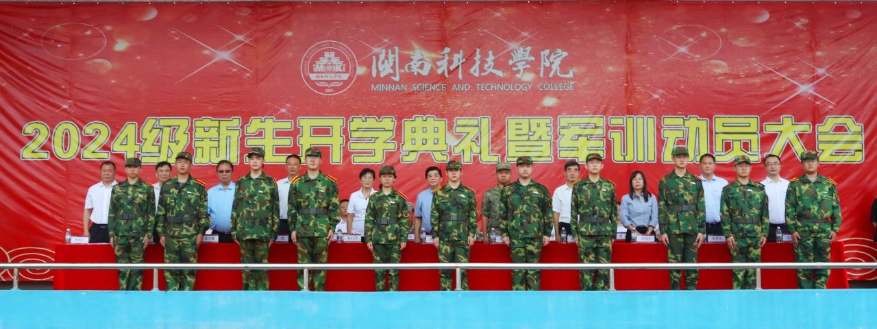 9月15日上午,我校2024级新生开学典礼暨军训动员大会在康美校区隆重举行。军训承训部队中校政治教导员林长伟、上尉参谋刘航波、中尉排长黄华鑫,学校董事长林国端、法人代表戴林亚燕、原副董事长陈光曦,校领导游小波、李旭、周勇军、林树生、邱永渠,校长助理刘武强,行政职能有关部门负责人,各二级学院党政主要负责人出席典礼,2024级新生、新生辅导员及师生代表参加典礼。典礼由校党委副书记林树生主持。