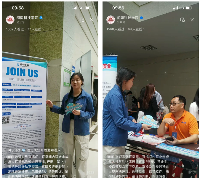 招聘会以“现场招聘+直播带岗”的形式,线上线下同步进行,通过“雷速网页版”微信视频号直播带岗,帮助毕业生快速了解用人单位,精准搜集岗位信息,促进毕业生与企业的实时互动。