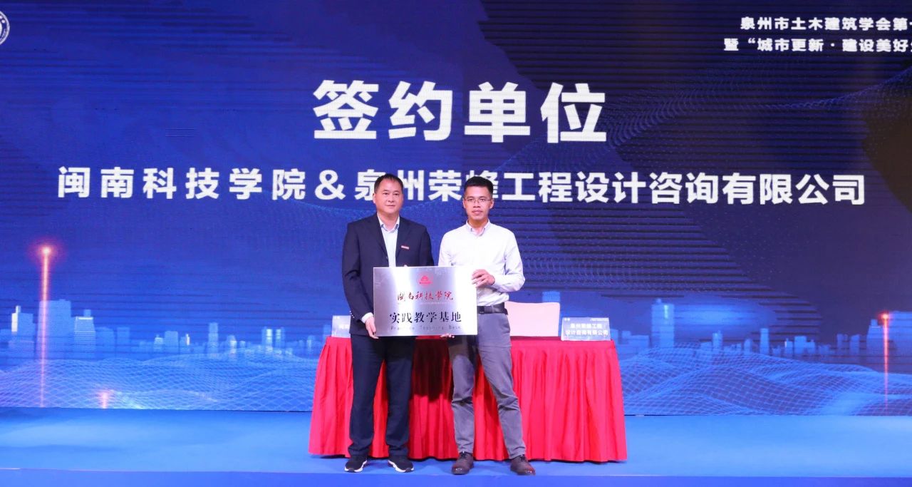 在签约仪式上,泉州市土木建筑学会与福建省国际人才交流协会进行战略合作签约;我校分别与福建省南安市第一建设有限公司、巨匠天工(厦门)建设工程有限公司、北京构力科技有限公司、泉州荣峰工程设计咨询有限公司进行共建实践教学基地签约授牌。
