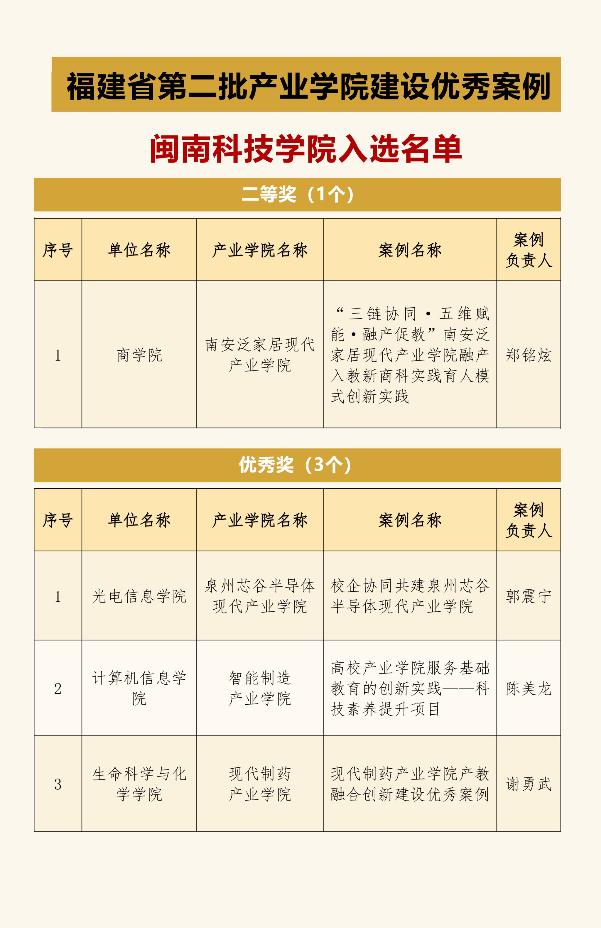 近日,福建省高校产业学院发展联盟公布第二批产业学院建设优秀案例入选名单,我校4项案例成功入选,获得二等奖1项、优秀奖3项。