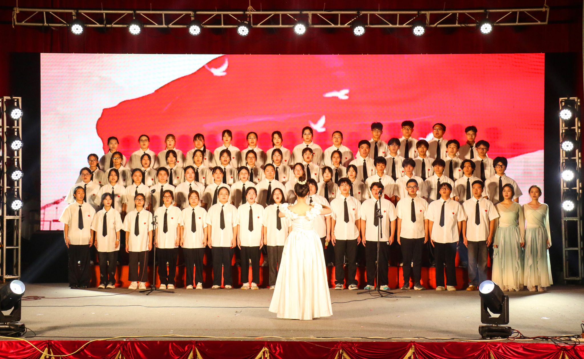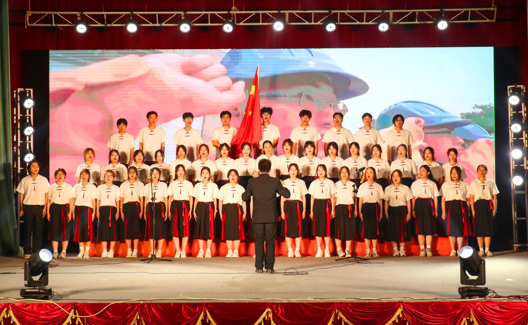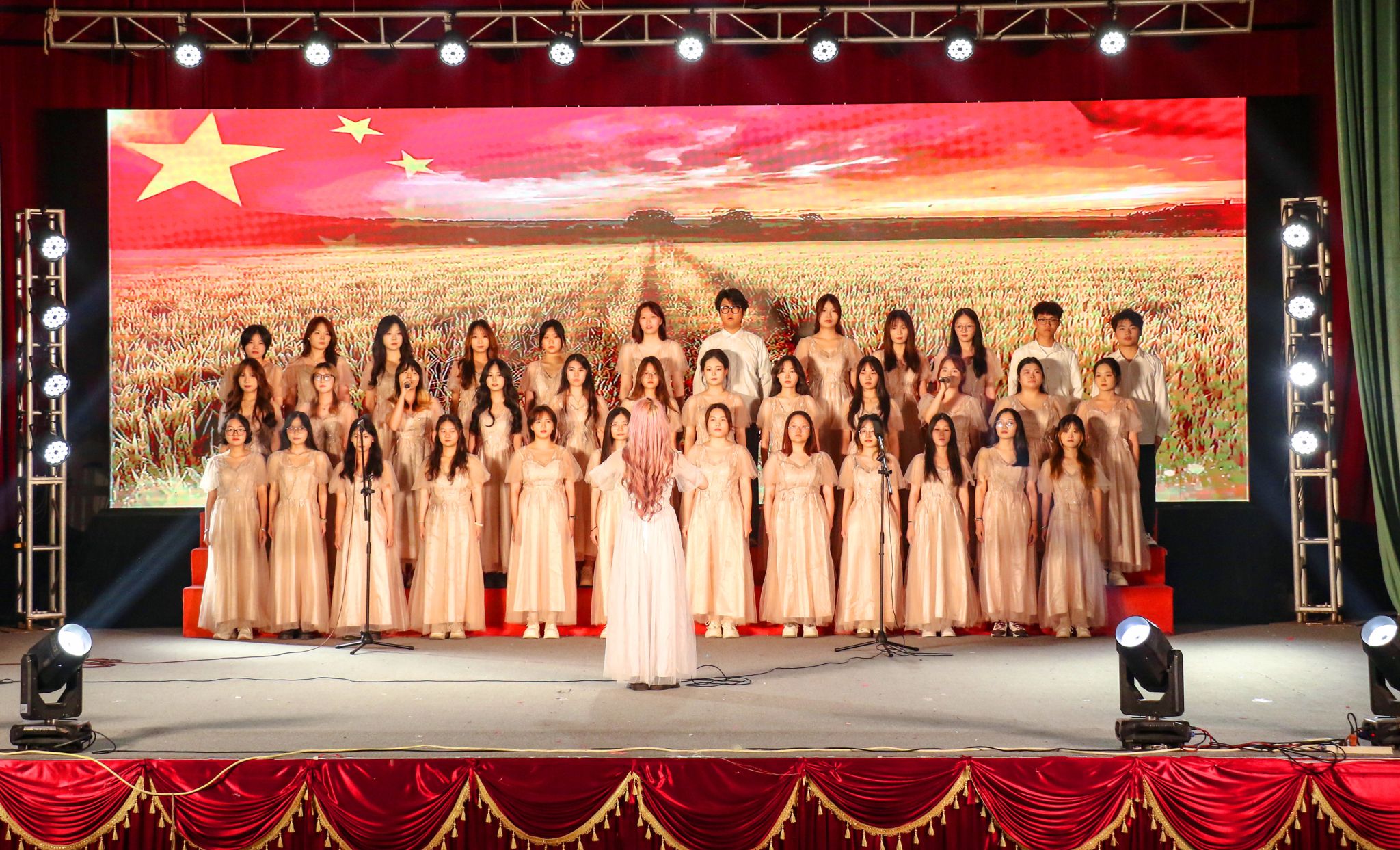 活动现场,进入决赛的13支专业合唱代表队,倾情演唱了《歌唱祖国》《走向复兴》《没有共产党就没有新中国》《黄河大合唱》《大中国》等经典红色歌曲,同学们用嘹亮的歌声奏响青春乐章,以饱满的热情歌颂伟大时代,编织出一堂沉浸式的美育课,引导广大青年学子进一步坚定文化自信,弘扬五四精神,传承红色基因,厚植爱国情怀。