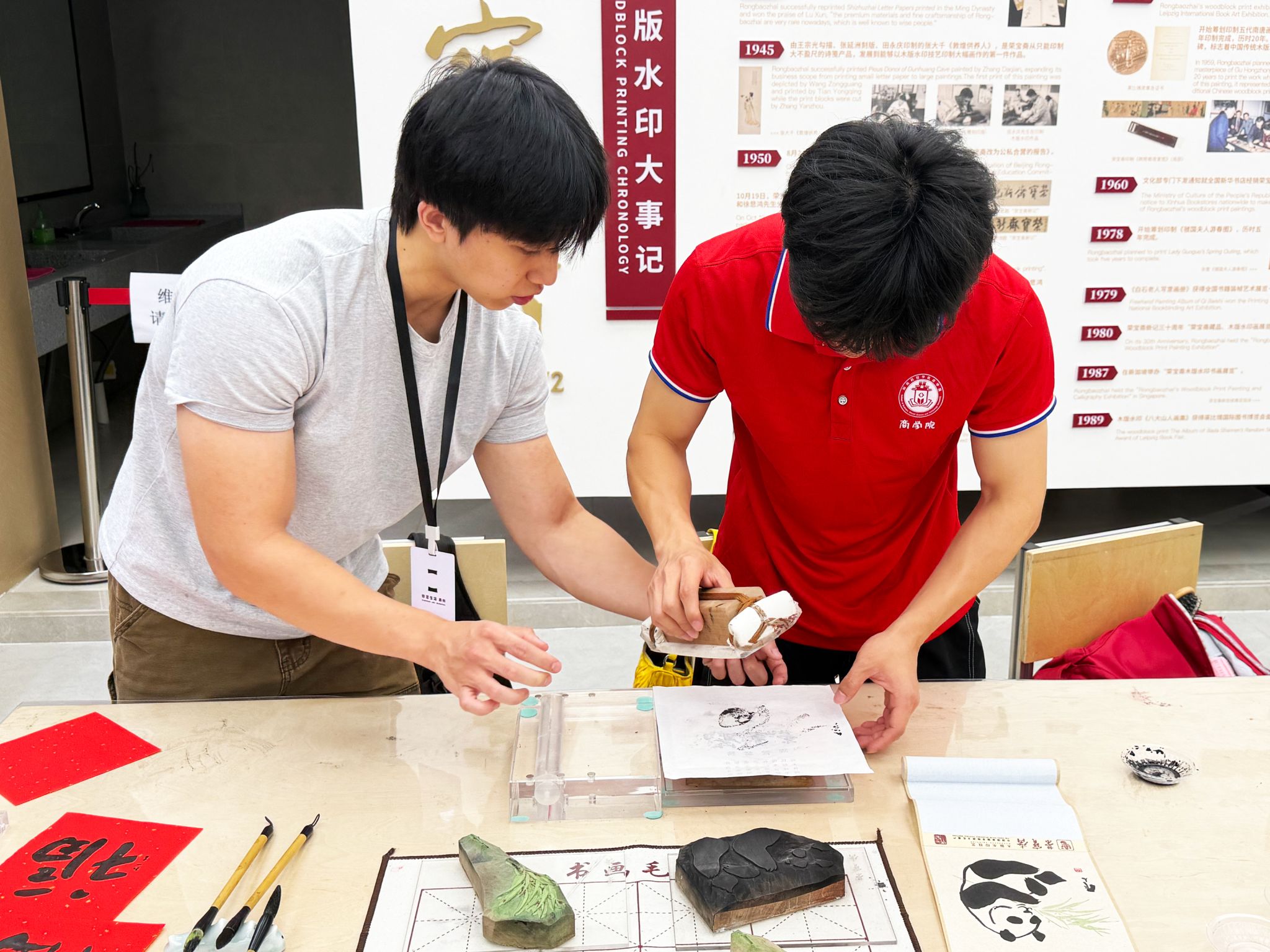 “当亲手印出第一张年画时,突然理解了‘工匠精神’就是对细节的极致追求。”实践队走进荣宝生活·泉州馆,沉浸式探索木版水印与花灯非遗技艺。在非遗技艺多媒体展厅,队员们通过互动体验,感受千年技艺通过数字化手段焕发光彩,与工匠面对面访谈,揭开“刻版-刷印-装裱”的传统工艺密码。大家还亲手体验木版雕刻与花灯扎制,在木屑与竹篾的交错中感受非遗的温度,并记录下从技艺传承到创新设计的完整脉络。