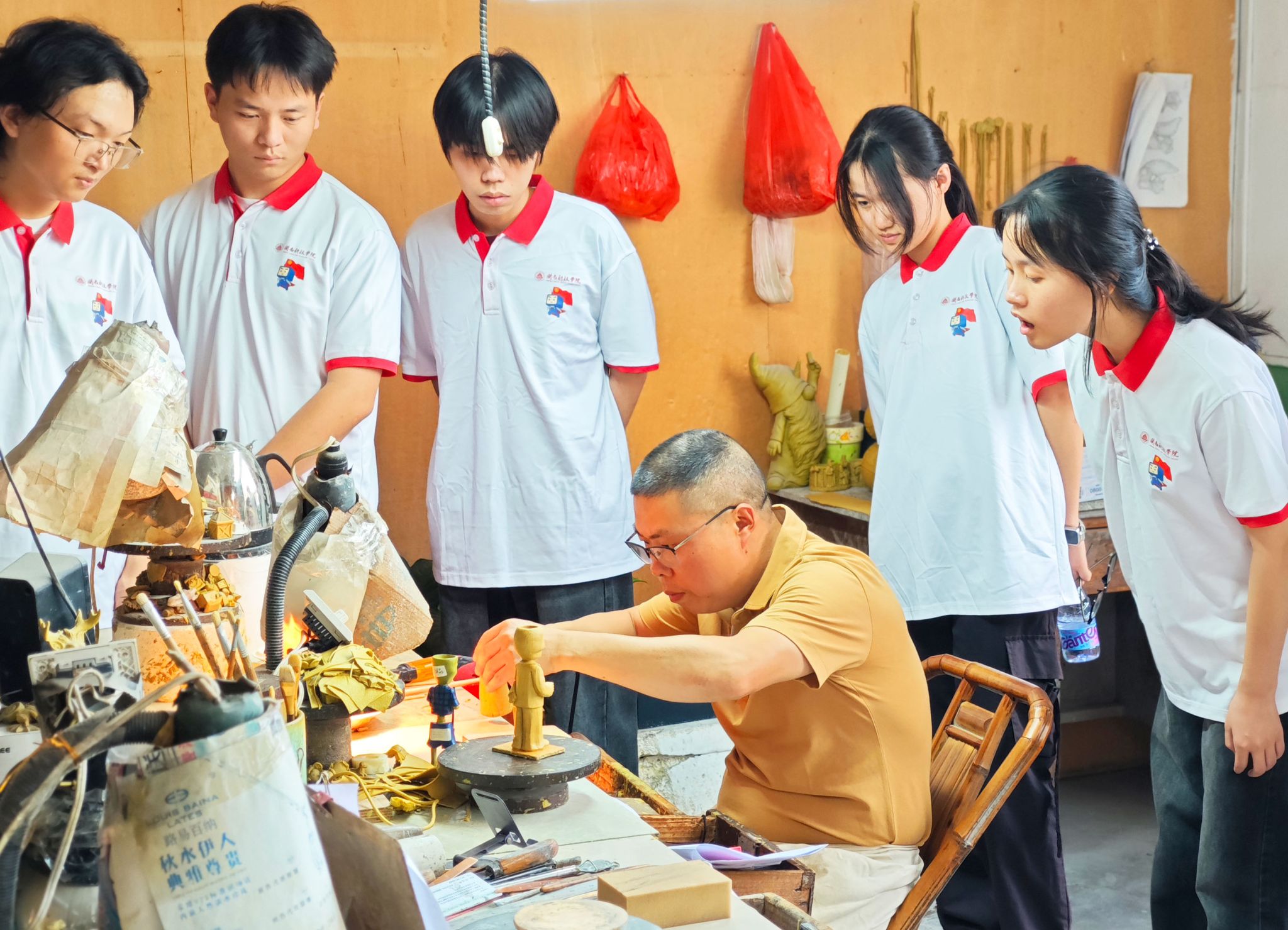 实践队一行走进张明贵大师工作室,领略德化瓷的精良制作,体验陶瓷创作。张明贵大师创作的作品或古朴典雅,尽显传统工艺品的温润之美;或创意十足,将现代艺术元素与瓷艺巧妙融合,每一件都凝聚着大师对瓷艺的深刻理解与不懈追求,展现了伟大工匠精神,大家深深折服于大师的精湛技艺与艺术传承。