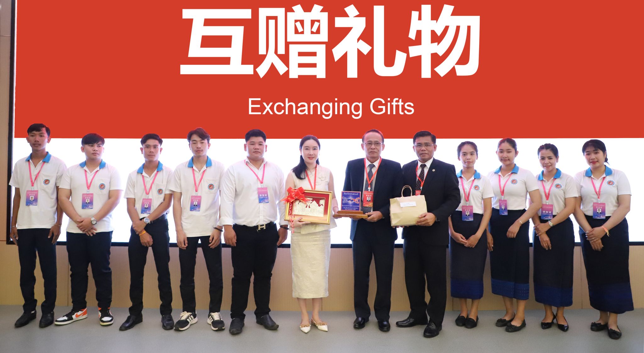 岳瀚槭副校长在致辞中代表学校董事会和全体师生,热烈欢迎参加研学的老挝师生朋友们。她表示,学校始终坚持“立足地方、服务区域、对接国际”的发展战略,致力于将中华优秀传统文化、现代职业技能与国际交流机制有机融合。本次研学项目正是这一理念的集中体现,也是我校积极响应国家“一带一路”倡议、拓展中老教育合作的生动实践。此次研学营学员们将在这里学习语言、体验技艺、结识朋友,打开一扇了解中国的窗口,种下一颗通向未来的种子,并期待学员们把所见、所感、所思带回老挝,成为连接中老友谊与文明的传播者。