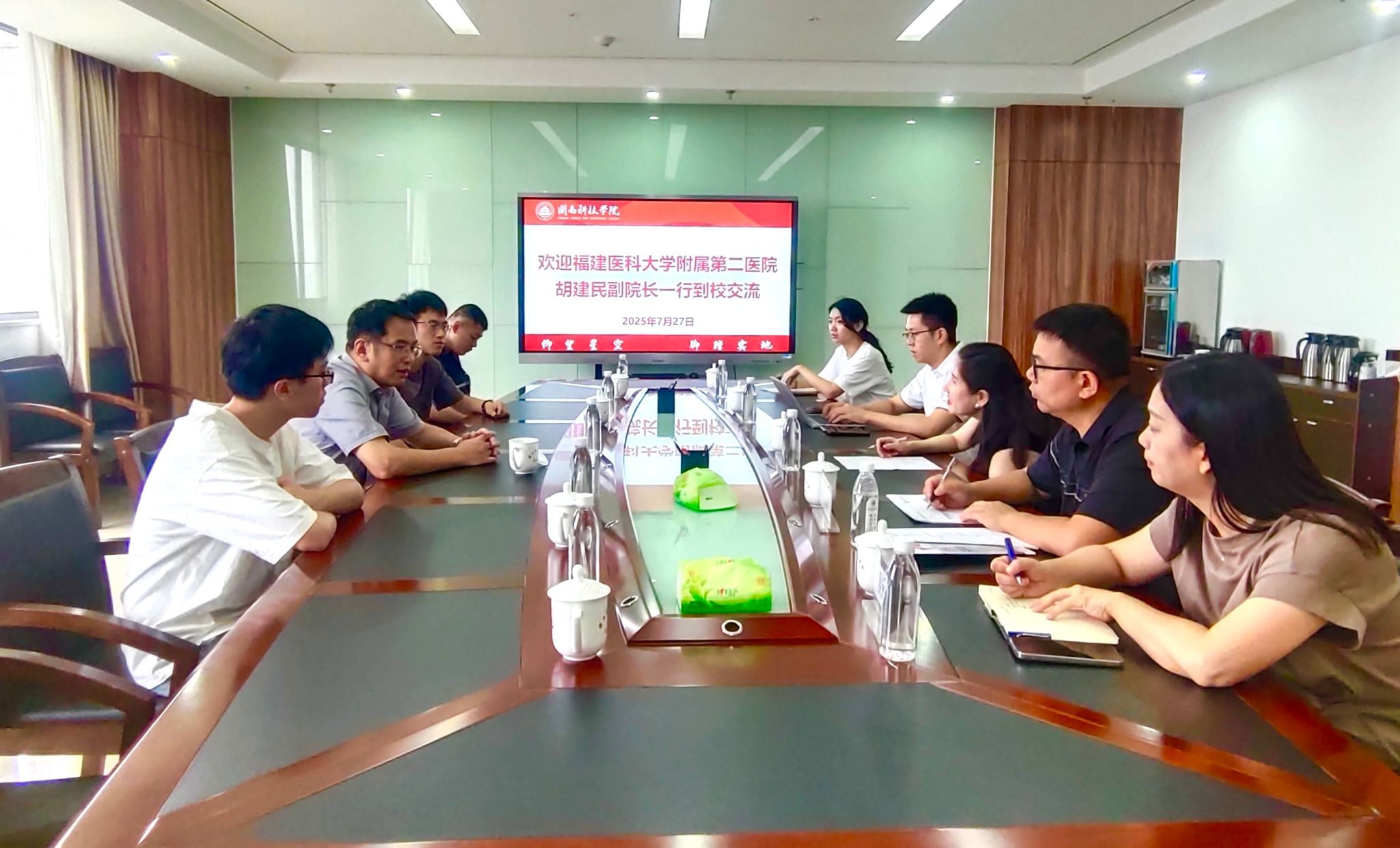 7月27日,福建医科大学附属第二医院副院长、福建省儿童青少年近视防控研究中心主任、视障辅助技术福建省高校工程研究中心主任胡建民教授带队莅临我校开展调研交流,副校长岳瀚槭出席座谈会,光电信息学院、科研处有关负责同志参加活动。