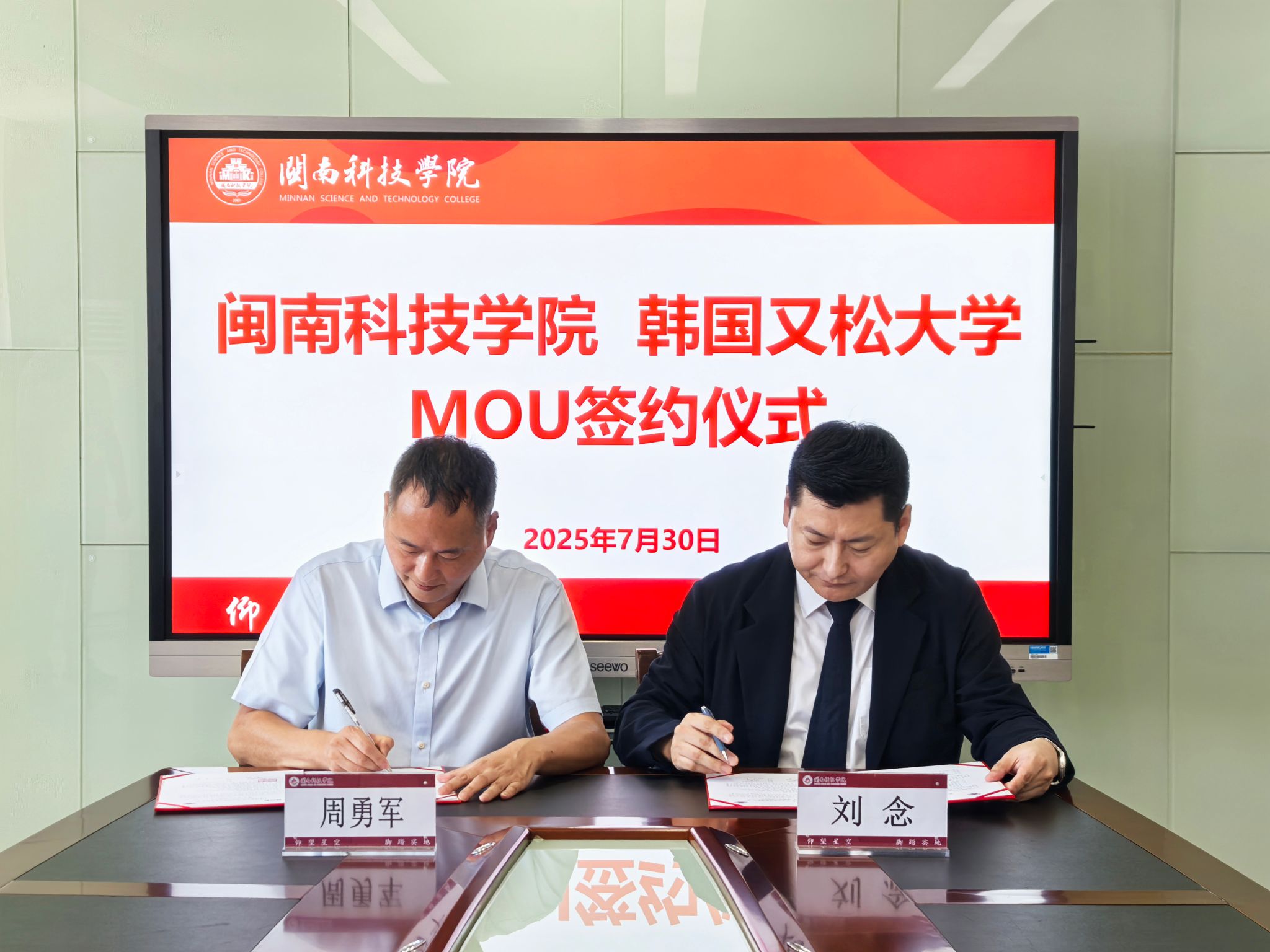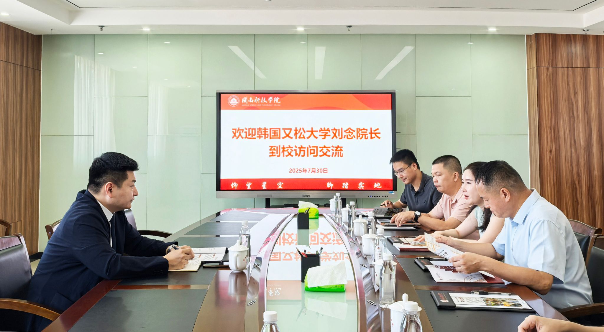 7月30日,我校与韩国又松大学举行交流座谈并签署国际教育合作框架协议。韩国又松大学中国事务处处长、海外教育学院院长刘念教授,我校常务副校长周勇军、副校长岳瀚槭出席会议,科研处,学生工作处,教务处负责人参加活动。