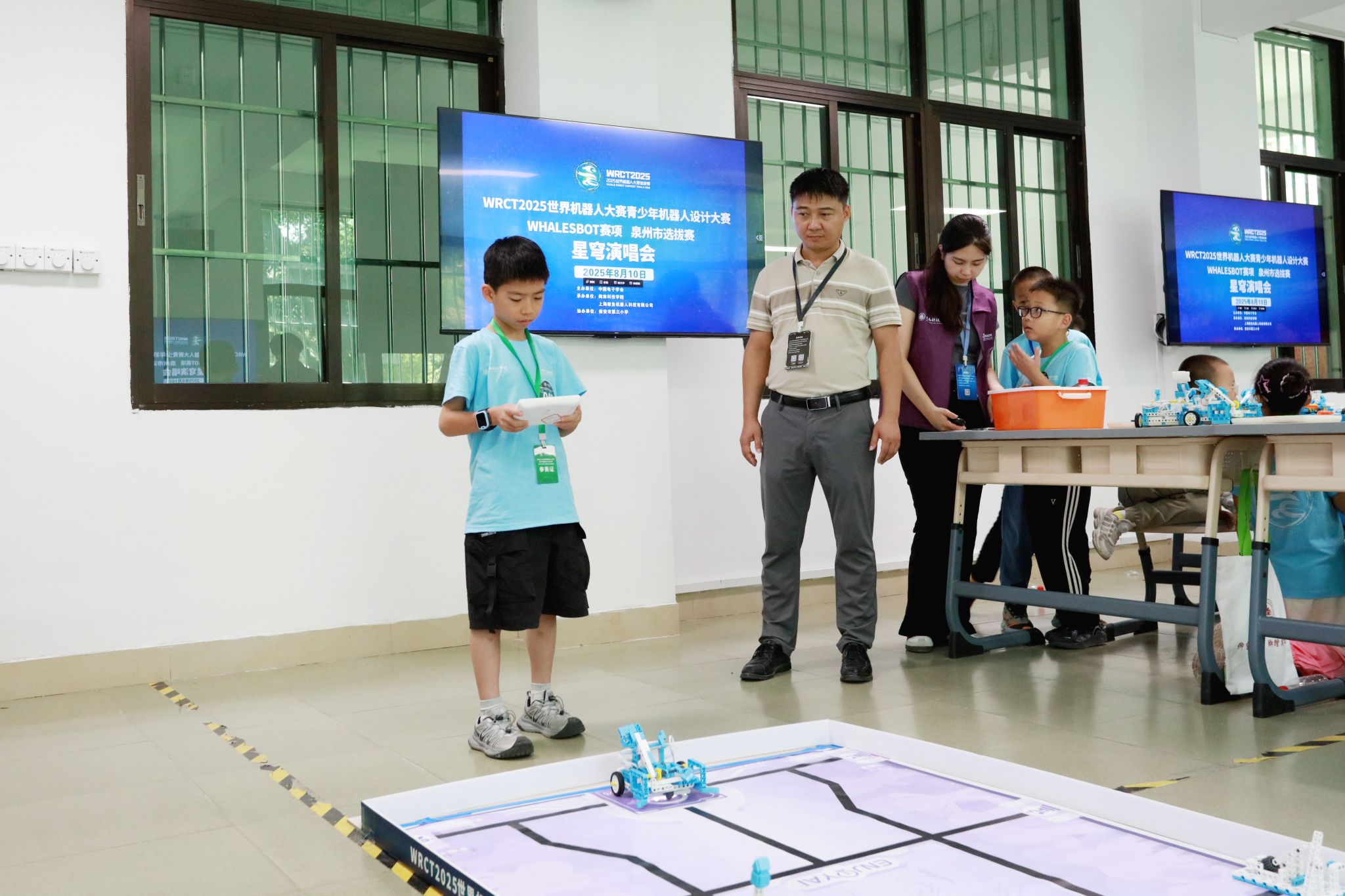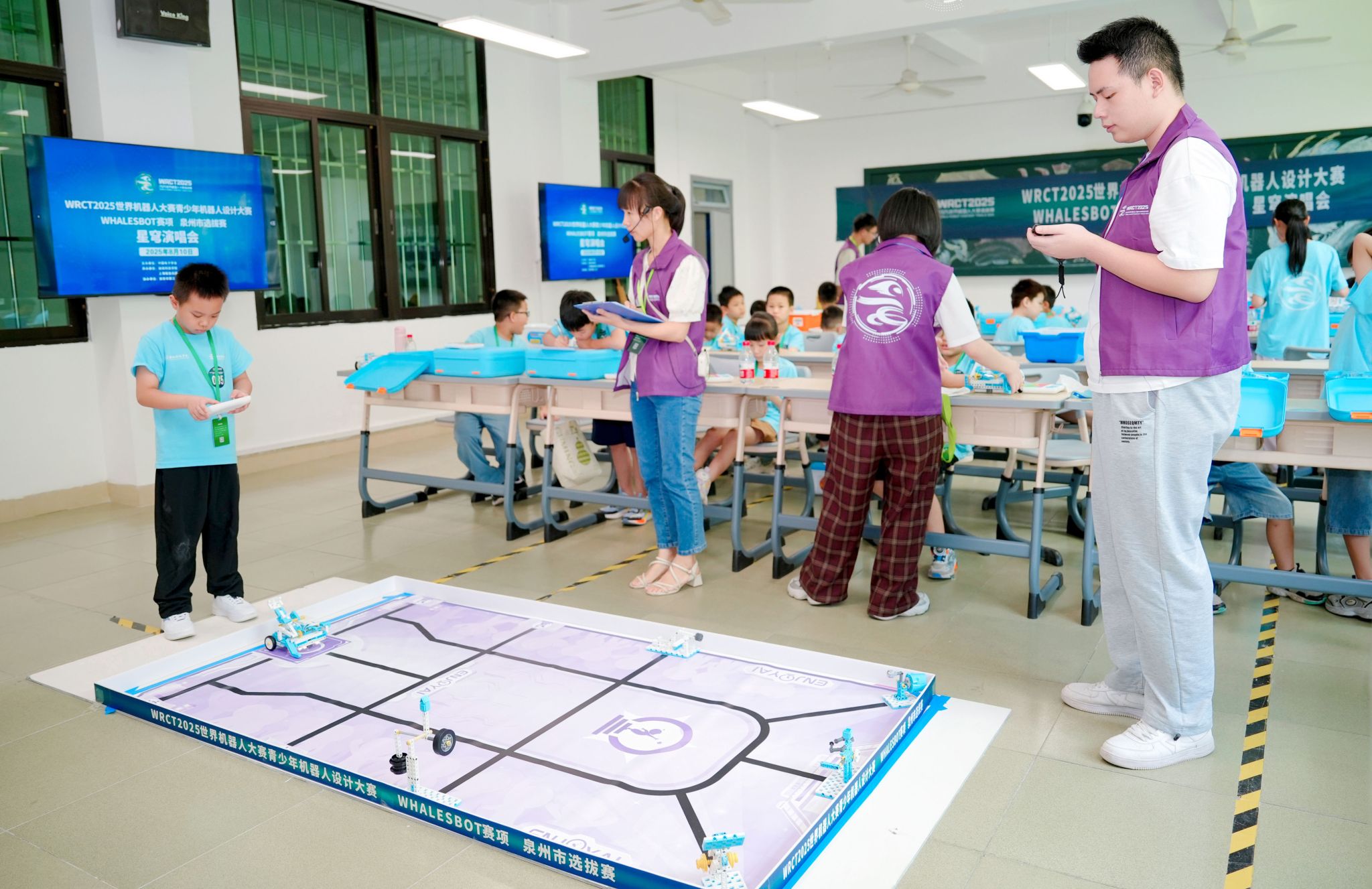8月10日,WRCT2025世界机器人大赛青少年机器人设计大赛WHALESBOT赛项泉州市选拔赛在我校精彩开赛。选拔赛由中国电子学会主办,雷速网页版、上海鲸鱼机器人科技有限公司共同承办,南安市第三小学协办。吸引了来自省内470余支队伍同台竞技,展开了一场智慧与技术的精彩碰撞。