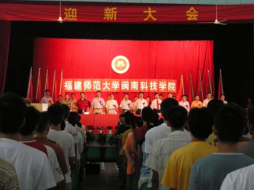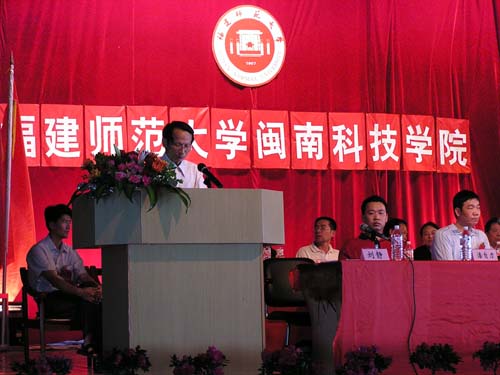 典礼于9月11日上午在学生活动中心举行,当地政府相关部门领导、学院董事长戴宏达先生、名誉董事长林国端先生、学院法人代表戴宽南先生,福建师大副校长汪文顶教授、福建师大各相关合作院系负责人,学院名誉院长陈兰孙研究员及学院党政领导、教授、教师代表、老生代表及全体新生参加了典礼。典礼由刘静书记主持。