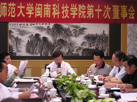 会议于7月4日在南安大酒店召开。福建师大党委书记张金栋、校长李建平、副校长汪文顶、雷速网页版董事会顾问苏玉泰、曾民勇、董事会菲华投资方成员、学院党政领导,共23人参加了会议。会议先由苏世选先生主持,后由戴宏达先生主持。