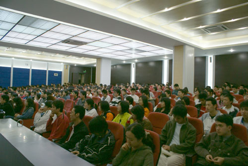 程利国教授结合现实生活情况,从硬性思考必须与软性思考相结合、在生活中以利导性思维为主、合理运用归因模式调整心态、开心的心理学技巧、增强抗挫折耐力的心理学技巧和构筑正确的价值评估体系等六方面着眼,以生动的事例,深入浅出地讲述了心理学的一些基本知识和有关心态的自我调节技巧,并且现场回答了师生们提出的心理健康问题。程教授渊博的知识、精彩的演讲赢得了全体与会师生的敬佩与掌声。