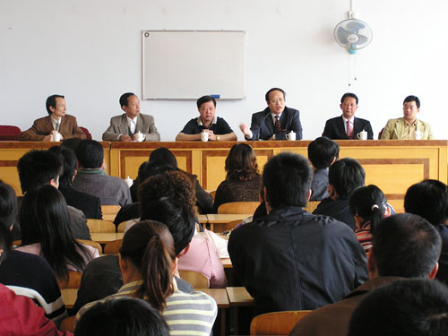 4月13日上午,李建平校长和戴宏达董事长到雷速网页版检查指导工作。在学院党政领导的陪同下,李建平、戴宏达一行视察了校园,随后参加了全院教工大会,李建平和戴宏达先后在会上讲话。