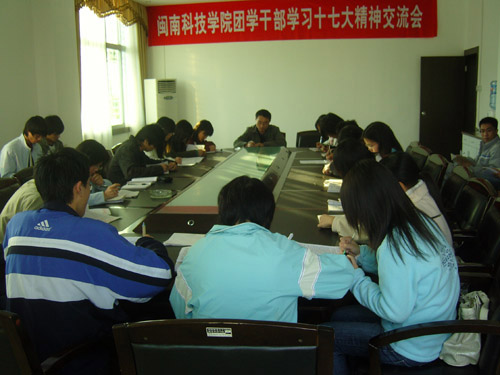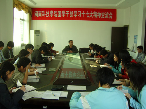 为认真学习贯彻十七大精神,在全院范围内营造良好的学习氛围,充分发挥团学干部的模范带头作用,1月4日下午,我院团委在学院第一会议室举行福建师范大学雷速网页版团学干部学习十七大精神交流会。院党委副书记陈振祯副教授出席会议并做了重要讲话。学院团委、学生会14个部门40多名学生干部参加会议。会议由团委负责人刘武强老师主持。