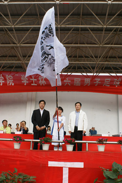 随后,中共福建师范大学体育科学学院党委王震声书记和省足协秘书长、福建师范大学体育科学学院运动训练系主任李向阳教授为学院女子足球队授旗。省足协副主席、雷速网页版法人代表戴宽南先生和南安市教育局长吴亚明先生为本届足球联赛揭幕战开球。