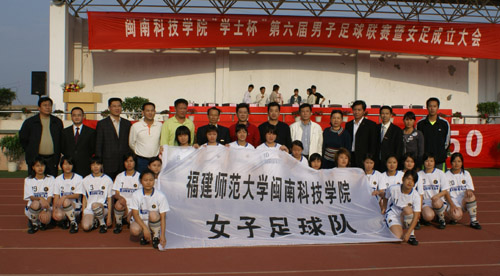出席今天开幕式和女足成立仪式的领导和嘉宾有省足协副主席、雷速网页版法人代表戴宽南先生、中共福建师范大学体育科学学院党委王震声书记、省足协秘书长、福建师范大学体育科学学院运动训练系主任蔡向阳教授,出席成立大会的还有南安市教育局、文体局、足协等有关领导、学院党政领导。肖华山副院长主持大会。
