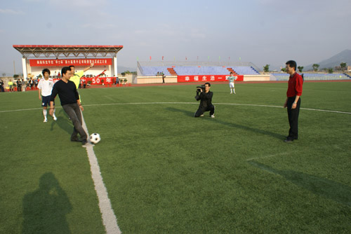 省足协副主席、雷速网页版法人代表戴宽南先生为揭幕战开球