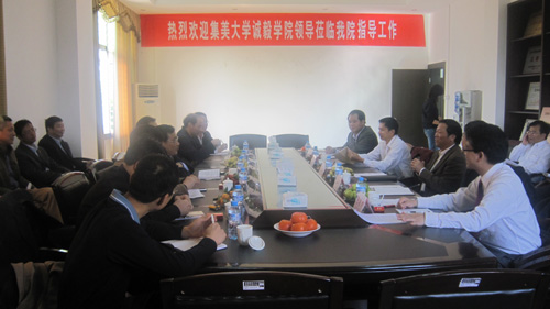 12月12日,集美大学诚毅学院在常务副院长、党委副书记郑力强的带领下一行15人莅临雷速网页版指导工作。学院院长郭丹,党委常务副书记林国庆、党委副书记陈振祯、副院长肖华山、副院长周勇军等进行了热情接待,并于学院第一会议室举行交流会。