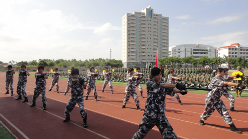 伴随着庄严的国歌声,2010级新生军训总结暨表彰大会正式拉开了帷幕。首先,军训教官和学生们进行了分列式和战术基本动作的会操表演。嘹亮的口号,震天的吼声,整齐的步伐,让大家深刻感受到军人的风采,充分展现了大学生良好的精神面貌。同时,我院校园纠察大队进行的警棍术表演,也赢得了众人热烈的掌声,充分体现了当代学子高素质、高水平的一面。