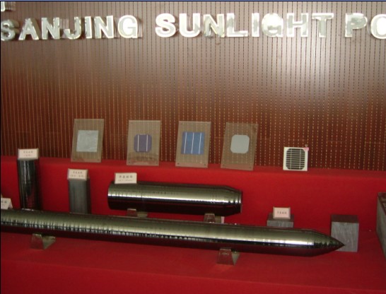 用自己提炼的单晶制造硅光伏电池,原料与产品生产一条龙是三晶的特点,这在全国实属罕见,学生实地考察了太阳能电池生产全流程:a、提纯 b、拉棒 c、切片 d、制电池 e、封装。 还向技术人员请教了一些课堂上碰不到的问题,有的同学结合光电导盲犬,光电卸载等竞赛课题请教硅光电池的参数指标及价格。