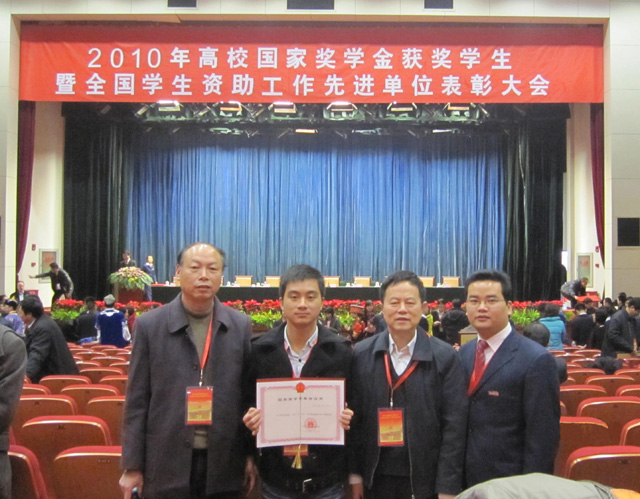 2010年全国高校国家奖学金获奖学生暨全国学生资助工作先进单位表彰大会于12月20日在教育部礼堂举行。福建省教育厅副厅长薛卫民、省学生资助管理中心主任吴选兴、我院学生资助管理中心老师吴永进代表福建省高校、学生林艺雄代表福建省学生出席参加了会议。