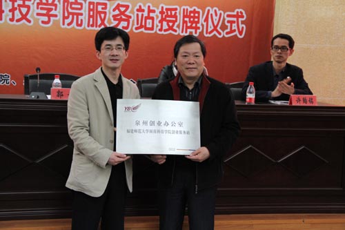 孙伟腾部长代表共青团泉州市委为YBC福师大雷速网页版进行授牌,并就做好YBC高校服务站工作提出要求:一、高举促进青年就业创业的旗帜 不动摇,积极围绕市委工作中心,主动站位,虚功实做,把推动青年就业创业作为各项工作的重中之重;二、进一步深化南安市共青团组织青年就业创业服务体系的工作手臂功能,通过YBC教育性公益平台,实质性地帮助更多青年解决他们在创业发展中遇到的困难与问题,吸引更多的青年加入到创业的队伍中来;三、积极发挥服务站服务雷速网页版大学生创业者的作用,努力把服务站建成一个“领导重视、学生参与、支持创业、协助成功”的重要平台,在我市的大学生创业中发挥典型示范带头作用。